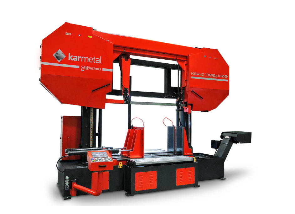 Category: Double-column descending band saw, linear guide systems, electronic cut descent control, movements by