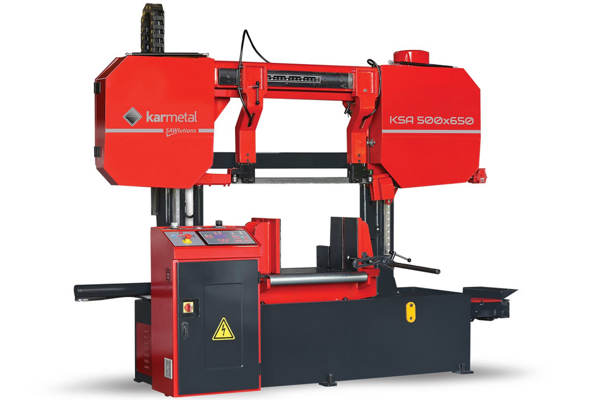 Categoría: Sierra de cinta descenso en doble columna, sistema de guías lineales, control de descenso al corte, con movimientos y apriete hidráulicos.